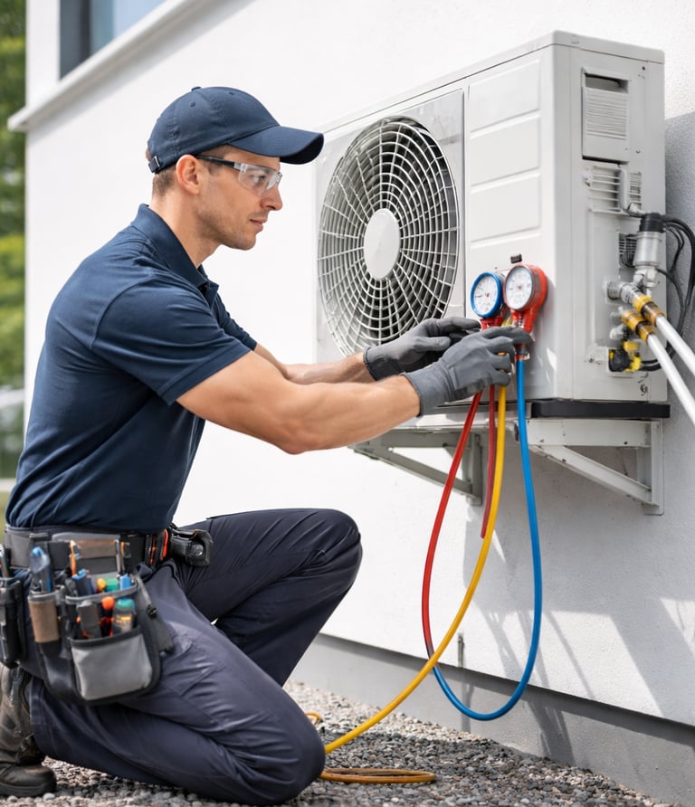 Realizamos instalação residencial de ar-condicionado com qualidade, segurança e acabamento profissional. Trabalhamos com equipamentos split, inverter e janela, garantindo o funcionamento correto desde o primeiro uso. Nossa equipe cuida de todas as etapas do serviço, desde a fixação das unidades, instalação de tubulações e drenagem, até as ligações elétricas e testes finais, sempre seguindo as normas técnicas.